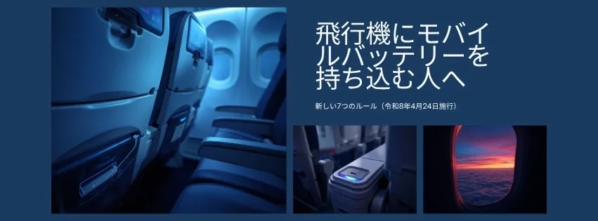 令和8年4月24日から、飛行機に乗る人(搭乗者)がモバイルバッテリーを機内に持ち込む際のルールが変わります。